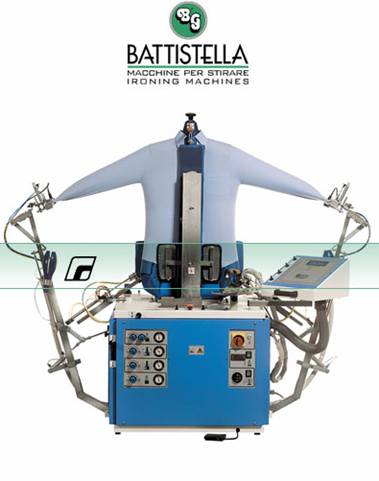 Пароманекен, передний прижим и боковой прижим пневматического действия, автоматизированная, прграммируемая система работы, поддув 2,2 кВт, дополнительный подогреватель пара 1000 Вт, в стандартной оснастке натяжители рукавов и зажимы, регулируемая ширина плеч и корпуса. Подключение трехфазовое 400 В, вес 250 кг, габаритные размеры 180x210x161 см, объем в упаковке 4,6 м3. Требуется внешний источник пара с рабочим давлением 5 бар и сжатого воздуха. |