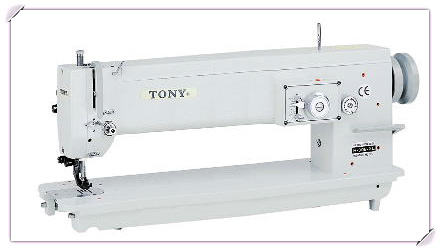 L- на легкие материалы. M - на средние материалы. H - на тяжелые материалы. | TONY H-928-XH-PS 3-игольная машина цепного стежка с П-образной платформой, с автоматической системой смазки. Расстояние между иглами 6,4мм. Для выполнения "шва в замок" на тяжелых материалах, джинсах, спецодежде. Для улучшения продвижения материала оснащена тянущим роликом (пуллером). Скорость до 3600 ст/мин, длина стежка 0-4,2мм, подъем лапки 11мм. В наличии на складе! Немного б .у Цена 1990 руб с НДС. Гарантия 1 год. TONY H-927-M-PS 2-игольная машина цепного стежка с П-образной платформой, с автоматической системой смазки. Расстояние между иглами 6,4мм. Для выполнения "шва в замок" на средних тканях (рубашки). Задний пуллер. Скорость до 4000 ст/мин. подъем лапки 10мм, длина стежка 0-3,5 мм. | | Швейная промышленная машина плоского шва TONY H-35800-HRPS (Тайвань) |  | TONY H-35800-HRPS Данная швейная машина наилучшим образом подходит для пошива таких изделий как одежда для плавания, одежда для тренировок и колготки, изготовление которой, требует наличие крепких плоских швов.Швейная машина захватывает края двух частей изделия для размещения их под прижимной лапкой и прошивает, в тоже время, обрезая их горизонтальным ножом. Две части изделия автоматически располагаются таким образом, чтобы левая укладывалась на правую часть. Швейная машина оснащена пятью иглами, а обычная швейная машина плоского шва имеет лишь четыре иглы. Это означает, что швейная машина выполняет плоский шов повышенной прочности. Технические характеристики TONY H-35800-HRPS: Длина стежка: 2.1-3,6 мм Подъём лапки: 10 мм Количество ниток: 6 бобин Кол-во игл: 3 иглы Число оборотов главного вала: 4500 об/мин Срок поставки до 14 дней | | Мешкозашивочная машина TONY H-7-А (Тайвань) |