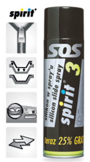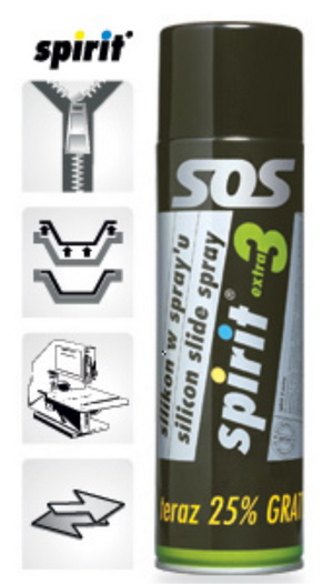 | Порошок чистящий для лент дублирующих прессов ROLLAX, банка 250 г |  | ROLLAX это силиконовое чистящее средство для дублирующих прессов в порошке. Легко удаляет остатки клея с тефлоновых поверхностей [лент и плит] дублирующих прессов и подошв утюгов. Систематическое применение защищает рабочие поверхности от чрезмерного изнашивания. Имеет в составе силикон высокой вязкости, что облегчает, например, отделение отливных форм. Не содержит растворителей и токсичных компонентов. Отталкивает воду. Характеристики: силиконовая пудра не содержит вредных компонентов не воспламеняется не поглощаем влагу температура плавления 60°С температура вспышки 240°С | | Spirit 1 Растворитель ржавчины |  | Spirit 1 - это универсальный препарат очищающе-восстанавливающий. Ослабляет заржавевшие болты, винты и гайки. Проникает в труднодоступные места, растворяет ржавчину и препятствует ее образованию. Предотвращает скрипы и обеспечивает скольжение механизмов. Растворяет не только ржавчину, но и масло, смолу. Предотвращает коррозию и окисление, вытесняет влагу, предохраняет от замерзания. | | Spirit 2 Масло вазелиновое |  | Spirit 2 это универсальное масло для смазки точных механизмов - беззапаховое, нетоксичное, незагрязняющее. Особенно рекомендуем для смазки деталей швейных, вязальных машин и другого оборудования швейной промышленности. Обеспечивает плавное скольжение движущихся механизмов. Облегчает также отделение готовых изделий из пластика и резины от литьевой формы. Нейтрально к пластикам. | | Spirit 3 Силикон антистатический |  | Spirit 3 - это нетоксичное, безцветное и беззапаховое силиконовое стредство. Не содержит хлорсодержащих растворителей. Используется как разделительное средство. Не содержит минеральных масел и жиров. Особенное применение находит в швейной промышленности - подошвы утюгов, лезвия вертикальных и ленточных ножей, рабочие поверхности, прижимные лапки, иглы, детали вязальных машин. Защищает от воды, коррозии и окисления, образуя при обработке чистый, скользящий слой. Применяется в типографии. Предотвращает заедание замков-молний в одежде. Защищает и придает блеск пластиковым изделиям. Способ применения: хорошо встряхнуть, опрыскать поверхность с расстояния 20 см | | Spirit 3 extra Силикон антистический высокой вязкости |  | Spirit 3 extra - это нетоксичное, безцветное и беззапаховое силиконовое средство высокой, относительно Spirita 3, вязкости. Антистатичный, облегчает скольжение. предотвращает склеивание элементов. Не оставляет маслянистого остатка. Особенное применение находит в переработке пластмасс - облегчает отделение готовых изделий от литьевой формы. В швейной промышленности - подошвы утюгов, лезвия вертикальных и ленточных ножей, рабочие поверхности, прижимные лапки, детали вязальных машин. Применяется в типографии. Предотвращает заедание замков-молний в одежде. | | Spirit 6 Промышленный очиститель |  | Spirit 6 - это профессиональный очиститель спрей. Обезжиривает поверхность, удаляет с машин и инструментов следы клея, смазок, старые масляные и прочие отложения. Превосходный для отмывания замков и других точных механизмов, которые были смазаны маслом. Удаляет смазку, ржавчину и улучшает работу механизмов. На очищенной поверхности остается тонкая защитная пленка. Служит для монтажных и ремонтных работ, например, автомобилей. Превосходно чистит остатки клея 