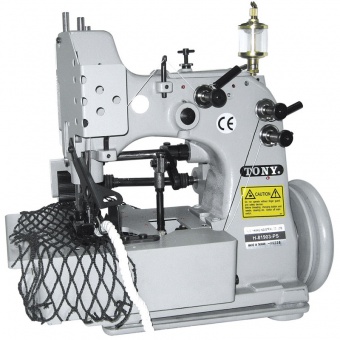Срок поставки до 14 дней | TONY H-81903-PSОдноигольная трехниточная краеобметочная швейная машина для пришивания шнура до 10 мм к краю сетки. Швейная машина имеет специальный задний пулер. Скорость 1500 об.мин. ширина обметки 12-19 мм, длина стежка 6-13 мм, модель игл SG7713 №230. |